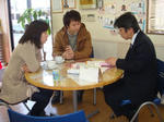 検査後は事務所でカーテンの打合せをされてました
