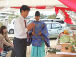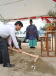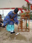 初めてその土地に手を付けると言う意味で、盛り砂に、鋤(すき)・鍬(くわ)を入れます