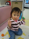 ママの膝に座って、ご機嫌さんです