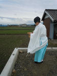 神前で、