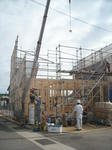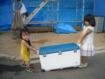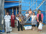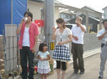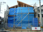 ブルーシートを張って、ゆいちゃんから記念の花束