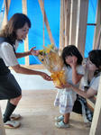 記念のサインをする小屋束を持って嬉しそうな里菜ちゃん
