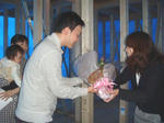 記念の釘打ちの後、ゆいちゃんから花束の贈呈