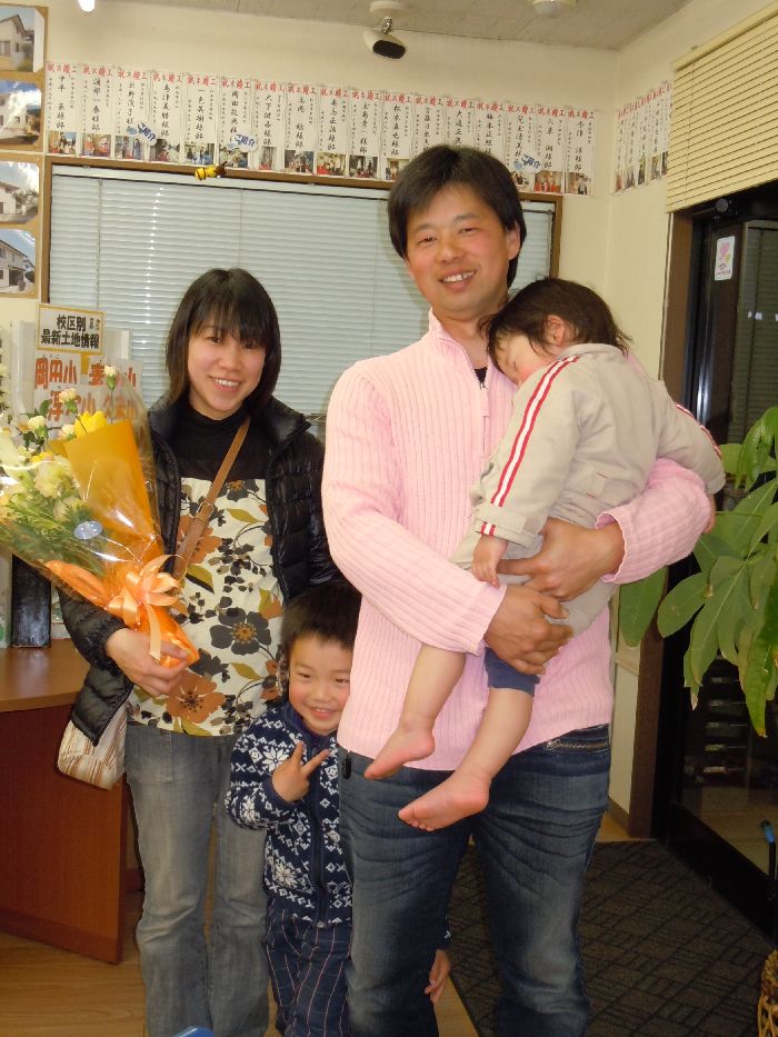 皆さん、こんばんは 今日はとっても良いお天気でしたね 暑がりの私(かおるちゃん)には、暑いなぁと感じる位でした お陰で、洗濯物はフワフワに乾きました さて、今日も嬉しい報告がありますよ~ <K様ファミリーご契約> 担当:ゆかりさん&かおるちゃん ご契約おめでとうございます K様ファミリーとの出逢いは、ちょうど1ヶ月前の今日2/19 優しいパパ・ママと、仲良し兄弟のしょうたろう君ととうや君、 そして、ママのお腹の中には、赤ちゃん 6月出産予定なので、新居には生まれてくる赤ちゃんも一緒に 出産家づくりお引越し...とお目出度い事が盛りだくさん 特に出産という大事がありますので、きっとお忙しいと思いますが、 家づくりに関しては、もちろん全面バックアップしますので、ご安心下さい 一緒に、家づくりを楽しみましょうね 生涯のお付合い...よろしくお願い致します しょう君・とう君と一緒に写っているお姉ちゃん達は・・・ 先日ご契約されたM様仲良し三姉妹 今日は、仕様決定(色やデザインなどを決める)の打合せに来て下さいました 契約の時には一番下のしおりちゃんだけだったんだよね 今日は、ほのかちゃんとあかねちゃんも一緒に来てくれました M様、仕様を決めるのって、悩みますよね 皆さん同じですよ(私の時も・・・) 工事が始まるまで時間がありますので、 一緒に考えて決めていきましょうね