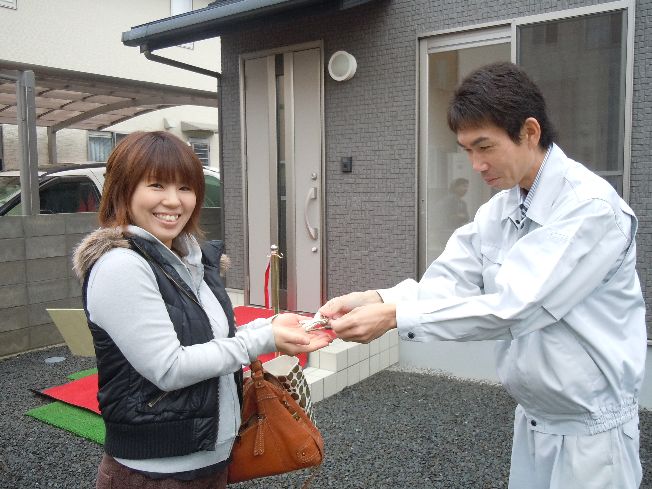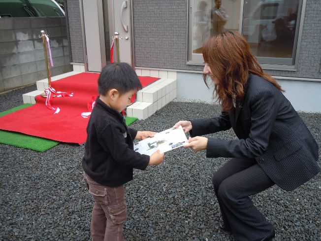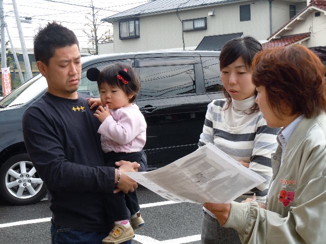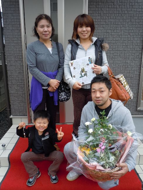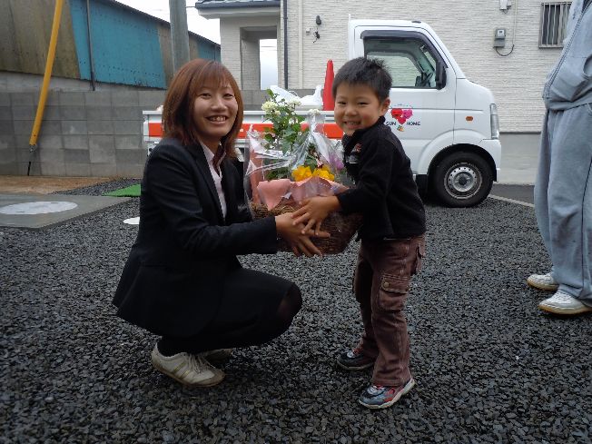 こんにちは、かおるちゃんです 天気が心配な日曜だったのですが、 晴れて、今朝は虹を見れました 朝からハッピーな気分です さて、今日も盛りだくさんですよ~ ご紹介するのは・・・ 松山市津吉町で、建築中の M様ファミリー 松山市久万ノ台で、建築予定の 毛利様ファミリー 松山市余戸で、建築が始まる U様ファミリー インター店メンバーのお誕生日 ヒントは『』 の、皆さんです 時間軸でお伝えしますね 午前9時 建物完成お引渡し 松山市津吉町 M様ファミリー 担当:ゆかりさん&輝君&かおるちゃん よいしょよいしょ 心配した大人たちの、『大丈夫』という声が聞こえてきそうですね(笑) 差し出した手がちょっと面白い写真です メンバーからの色紙に、喜んでくれたみたい 一緒に集合写真 そう君、キマってる~ 私達の大好きなM様ファミリー いつも笑いの絶えない、楽しい打合せでした 今日このまま引越しをされるとの事 引越しの時は、何かとバタバタして、疲れも出ますので、 特にお体に気をつけて下さいね また、家具が入って落ち着いたら、遊びに行かせて下さい 続いては、M様のお友達でもある 毛利様ファミリー 午前9時半 インター店にて打合せ 松山市久万ノ台 毛利様ファミリー 担当:店長&輝君&かおるちゃん 真剣な顔で選んでいるのは・・・『外壁』 『かりん様、こちらのお色はいかがでしょうか』 『う~ん、そうねぇ・・・』 『ちょっと見せて』 『ふむふむ・・・いいわ、進めてちょうだい』 『はいッ、かしこまりました』 って、そんな訳ないやろ~ すみません、遊びすぎですね いやぁ、この様子が面白くって、 ついつい勝手に吹き替えちゃいました 毛利様、シンプルでカッコイイ外観で、楽しみですね 工事が始まったら、ブログでもご紹介しますので、 皆さん、お楽しみに~ お話中は、ふうちゃんとかりんちゃん、 今日もお利口さんで遊んでました かりんちゃんの頭についてる耳 めっちゃ可愛いぃ~ 午前11時半 地鎮祭 松山市余戸 U様ファミリー 担当:ゆかりさん&輝君&かおるちゃん かなちゃんも、上手に『玉串奉奠』できました 雨が心配でしたが、 地鎮祭の時には、すっかり雨も上がっていました とびっきりの笑顔を見せてくれたかなちゃん ちょっと、コケちゃって、ドロドロになっちゃった あれかなちゃーん 発見 パパが『エイエイエイ』としていた砂山が 気になっていたみたい すっかり、砂遊びに夢中 帰る頃には・・・ 跡形もなく、崩れてました ちょっとコケちゃったけど、 楽しい時間だったね U様、本日は誠におめでとうございます 次は月末予定の『上棟』ですね 楽しみにしていて下さいね さて、誰のお誕生日でしょうか ・・・つづく