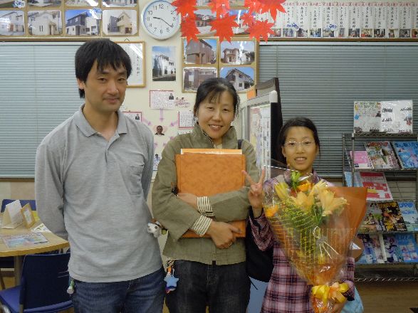 ![]() 新しい制服を買ってウキウキな薫ちゃんです ![]() 昨日と今日、嬉しい事があったので、 ご紹介しますね ![]() 昨日![]() 10/31(日) O様ファミリーご契約![]() 担当:杉ちゃん ・店長 ・薫ちゃん![]() とってもユーモアのあるO様ご夫婦 ![]() ご案内する時、 飲み物を出す時、 ユーモアのある一言に、いつも笑いが絶えません ![]() 昨日も、笑顔でお祝い出来て、嬉しかったです ![]() お花のプレゼントは、 店長から娘さんのサキコちゃんへ ![]() サキコちゃん、新しいお家づくり楽しみだね ![]() ご家族で ![]() 『はい、もっと近付いてくださーい 』O様、これから始まる幸せづくり、 一緒に楽しく進めていきましょう ![]() 改めまして、宜しくお願い致します ![]() メンバー皆で、携わる全ての人の力で、 O様ファミリーを必ず幸せにします ![]() ![]() 今日![]() 松山市津吉町で建築中のM様邸の 『完成検査』がありました ![]() 10/24のブログでご紹介した通り、 今日はM様ファミリー立会いの検査をしました ![]() 『完成検査』 クロス(壁紙)も張り、いつでもお引渡しできる状態で、 最終チェックを行います ![]() パパ・ママがゆかりさん と検査の間、もちろんそう君は・・・ 元気に走り回ってまーす ![]() ![]() 今日はすごくテンションが高くて、 帰る時には、真夏のように汗だくでした ![]() 汗が冷えて風邪引かないか心配です ![]() 気を付けてくださいね ![]() ![]() 『おーい、おねぇちゃーんここだよー』 辺りを見回すと・・・ おや ![]() 近付いてみると・・・ ![]() あ そう君を発見![]() 皆さん、わかりますか ![]() キッチンと階段の仕切り壁にある、 飾り棚から顔が見えてるんです ![]() ![]() 『ママー』 大好きなママも一緒に ![]() 可愛い写真が撮れました ![]() 今日も元気いっぱい、笑顔いっぱいの M様ファミリーでした ![]() おまけ ![]() なんと ![]() M様(奥様)のお父様が、 北海道土産のストラップを下さいました ![]() デザインもオシャレで、 帰ってすぐに付けましたョ ![]() ゆかりさんは、携帯に ![]() わたしは、デジカメに ![]() 今日は、M様(ご主人)から温かいコーヒーまで ご馳走になり・・・ ![]() M様ファミリーの優しい心遣いに、 感動したゆかりさんと私でした ![]() ありがとうございました ![]()