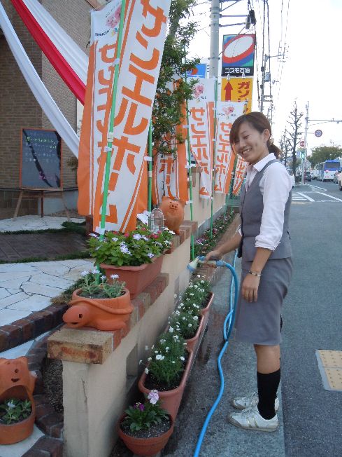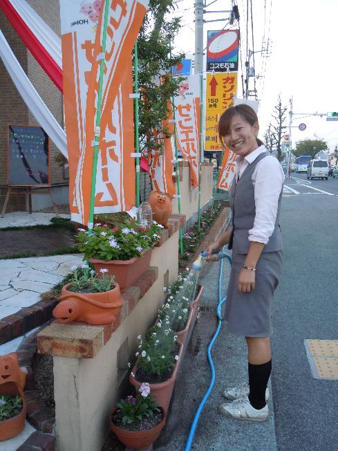 インター店は、建築会社には珍しく女性の多い店舗です。モデルハウスの周りは常に季節の花が溢れ、事務所の中にはいつも笑顔が一杯です(^^)