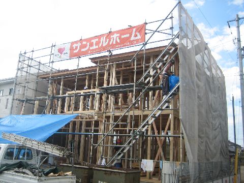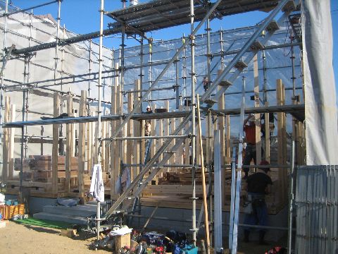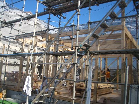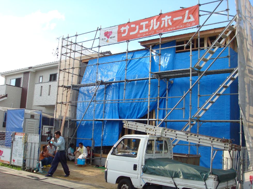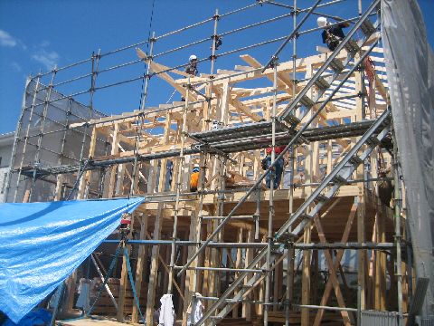 暑い中、大工さん達が一生懸命仕事してます