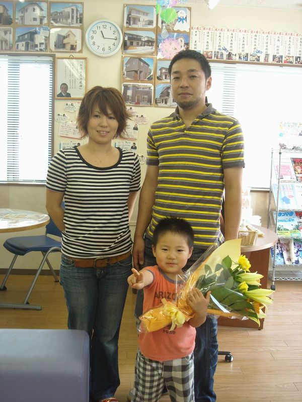 ![]() ゆいちゃんです ![]() 3連休は天気が良く、おでかけ日和でしたね ![]() ![]() 3連休最終日の今日、インター店では嬉しい事がありました ![]() 今日新たに幸せファミリーが誕生したので紹介します ![]() 7月19日(月) 晴れ![]() M様 ご契約 ![]() 担当は由加里さんと薫ちゃんペアです ![]() ![]() ![]() 薫ちゃんから花束を受け取ったのは M様のお子様そう君です ![]() いつも皆を笑顔にしてくれる元気いっぱいのそう君です ![]() 今日はパパとママが打合せ中、薫ちゃんと遊んでいました ![]() また今度一緒に遊ぼうね ![]() M様邸は松山市内に建築予定です ![]() ![]() M様の幸せづくりのお手伝いが出来る事をメンバー全員嬉しく思います ![]() これから始まるお家づくり楽しみですね ![]()