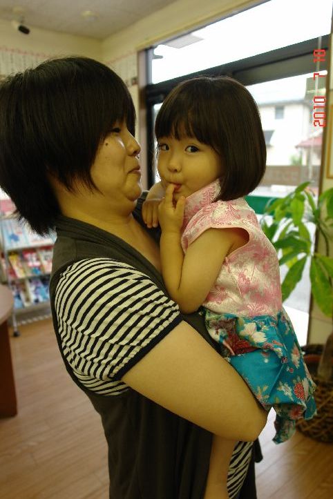 チャイナドレス姿を由加里お姉ちゃんに見せに来てくれました