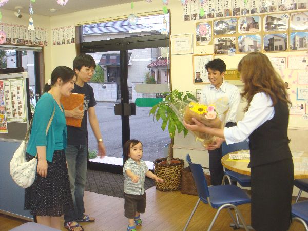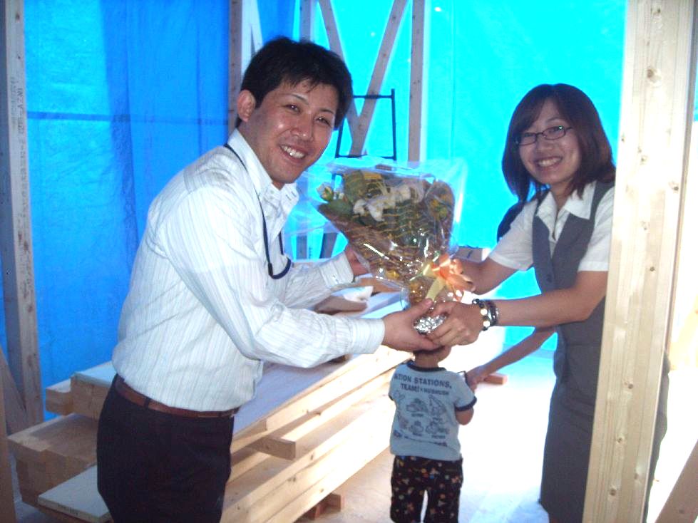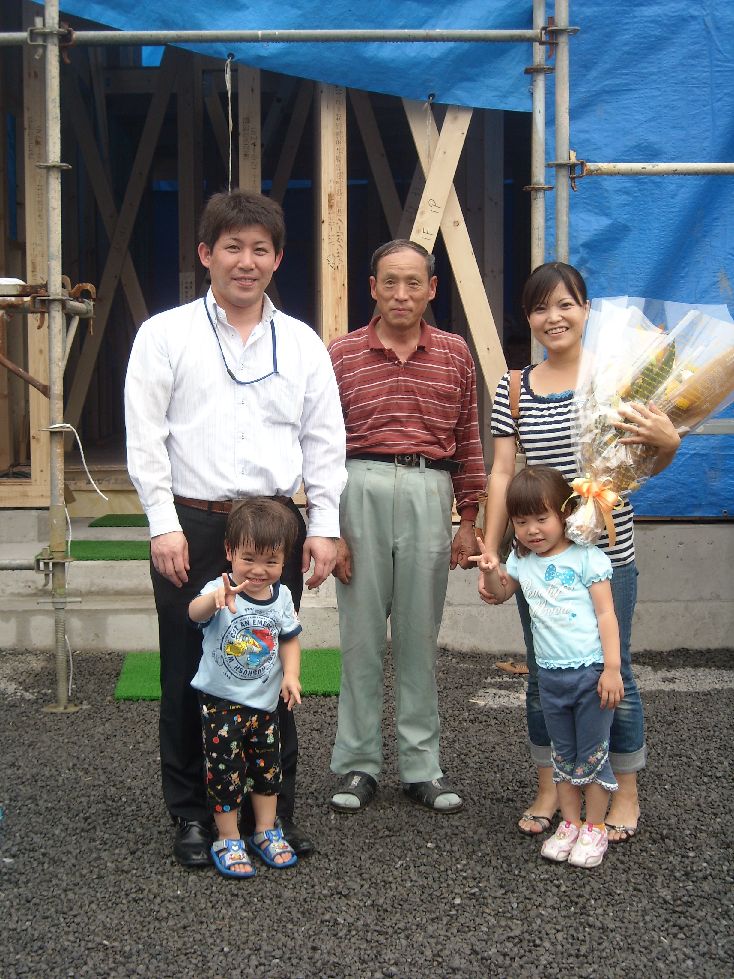 この時期に冷蔵庫が壊れてしまい ![]() 真っ青になって電気屋さんに走った岩本です ![]() ![]() 昨日届いた新しい冷蔵庫君、 大きさも機能も殆ど一緒だというのに、大騒ぎの岩本家でした ![]() さて、怪しい天気が続いていたここ数日ですが ![]() インター店では、沢山の嬉しい出来事がありました ![]() まずは、ご契約の報告です ![]() 6/29(火) 伊予市で建築予定のS様邸ご契約 土地探しからのS様 インター店の近くに勤めている事もあり、 当初は森松近辺での家づくりを考えていましたが なかなかいい土地が見つからず ![]() 垣生⇒南吉田と検討を重ね 最終的には、奥様のご実家の近くでもある伊予市での 家づくりとなりました ![]() いつも元気なゆずき君ですが、 契約の時は、更に元気一杯でした ![]() これから始まる家づくり・・・楽しみですね ![]() ********************** 6/30(水) 東温市で建築予定のK様邸ご契約 ![]() K様は、ご両親と3人暮らし 今はインター店の近くに住んでいますが、 東温市にある愛大病院や国立病院に通うご両親の事もあり 今まで暮らした家を売却して、住替えをする事に ![]() 丁度、横河原にどちらの病院にも近い分譲地がありましたので その土地で新居を建築する事になりました ![]() 趣味の事もあり、ヤマハの本格防音室も作っちゃいます ![]() 完成が、今から楽しみですね ![]() ************************** さて、次は上棟の報告です 6/30(水) 西垣生町:W様邸上棟 天気予報では、『絶対、雨降るんやないぃん 』っていう感じでしたがよほど日頃の行いが良かったらしく、 朝から雨も降らず、しかもあまり暑くもなく 丁度いい天候で上棟をする事が出来ました ![]() 乾杯で工事のスタート ![]() 相変らず手際のいい大工さん達 ![]() あっという間に形が出来上がりました ![]() ゆいちゃんから花束 のプレゼント!そして記念写真![]() 大工さん達とも、記念にパチリ 棟梁の俊ちゃん!宜しくお願いしますねぇ ![]() ************************** 同日、伊予市で建築のK様邸も上棟でした ![]() 前日に「明日予定通り、上棟しますね」とTelを入れましたが 天気予報が、あまりにも悪かったので、 耳を疑っていたK様でした ![]() 本当は、早朝だけ雨が残るかも・・・と思っていましたが 結局は、ちっとも降らずでヨカッタです ![]() 着々と進んでいく上棟工事 最後は、万一雨が降っても安心なように 外部をブルーシートで覆って、この日の作業は終了です ![]() 2ヵ月後には完成!!楽しみですね ![]() ************************ そして、翌日の7月1日(木)には 砥部町K様邸の上棟でした ![]() K様邸は、築30年以上の家の建替えです 長年住んでいた家を解体し ![]() 綺麗な更地に・・・ ![]() 上棟の当日は、前日と打って変わって 晴天で暑い1日でした ![]() あっという間に形になっていくK様邸 3日連続で上棟の輝君を 大工さん達と一緒に、ちょっといじってみました ![]() 頑張れ~~ 輝君![]() K様! 仮住まいも近くですので、 毎日でも現場に遊びに来て下さいね ![]() さてさて今日のところはこの辺で・・・ ![]() 昨日の東温市K様邸の上棟報告は 薫ちゃんにお任せしま~~す ![]() M.iwamoto |