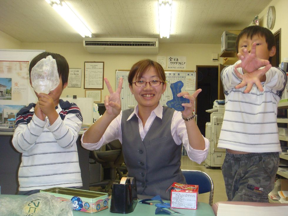 ![]() ゆいちゃんです ![]() 今日も事務所には可愛い子供達が沢山来てくれて 朝から一緒に遊びました ![]() ![]() 先週、ご契約したW様のお子さん ゆいちゃん 1年半くらい前にお引渡しをした O様のお子さん とも君 エルモのTシャツを着て来てくれました ![]() もう既に知っている方もいますが、 O様の担当だった由加里さんは エルモが大好きです ![]() 久しぶりに会えて嬉しいのと とも君が着ているのを見てとっても喜んでいました ![]() ![]() ![]() ![]() 以前、家の打合せで来ていた頃のとも君です ![]() とっても大きく成長していていました ![]() ![]() 最近は車などの乗り物に興味があるみたいです ![]() 二人が一緒に並んでいてとても可愛かったです ![]() ![]() 午後からも 先日、上棟したY様ファミリーが来られ 3人兄弟のそら君・りお君・ゆうき君と遊びました ![]() 今日は工作しました ![]() 長男のそら君がワクワクさんのテレビを見て 作り方を覚えていて、 とっても上手に出来上がりました ![]() ![]() 次男のりお君もそら君に教えてもらって 上手に作れました ![]() ![]() 三男のゆう君は今日もハイテンション ![]() ![]() 最近、ウルトラマンがお気に入りで ものまねが上手です ![]() 今日も可愛い子供達に会えて楽しい1日でした ![]() ![]() 昨日、書くのを忘れてましたが お引渡しをしたK様から ゼリーを頂きました ![]() ![]() ![]() 冷やして皆で頂きました ![]() とっても柔らかくて美味しかったです ![]() ありがとうございました ![]() ![]() そして、今日打合せに来ていたK様からも お菓子を頂きました ![]() 早速、食べちゃいました ![]() 美味しかったです ![]() ![]() ご馳走様でした ![]() ![]() 皆さんこんばんは |