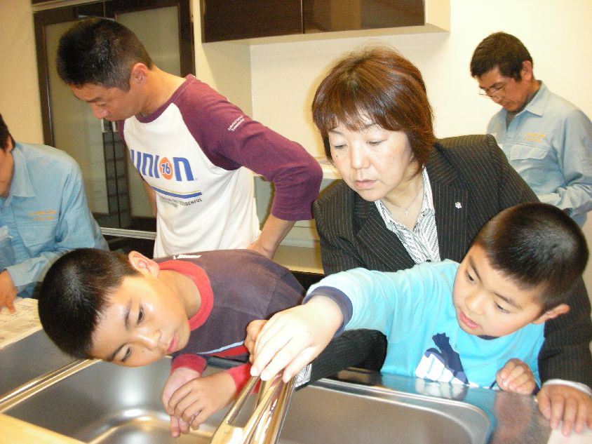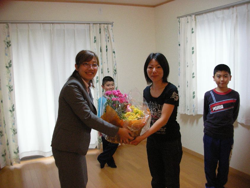 おはようございます かおるちゃんです 早速ですが、嬉しいご報告から・・・ 5/6(木)三瓶町・I様邸 完成引渡し 以前から、ブログでご紹介していたI様邸 とっても素敵なお家が完成しました 店長と輝君と3人で三瓶町まで行ってきましたよ~ 私達からI様へささやかなプレゼント I様の笑顔を見れて、私達まで幸せいっぱい ↑インター店のみんな~喜んでくれたよ ↓水の出し方をレクチャー 仲良し兄弟はいつも一緒 あれ今日は1人多いなぁ 店長でした