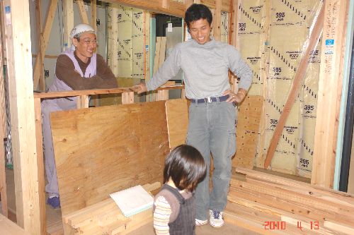 だというのに、今年になって、一度もクラブを触っていない岩本です ![]() 一緒のパーティーの人、ゴメンナサイ ![]() 一生懸命に走りますので・・・ ![]() さてさて・・今日は、由加里が担当している 砥部町K様邸の中間検査でした ![]() 中間検査では、壁や天井のボードを張る前に 電気配線を中心に、構造や棚の高さ等の確認を お客様に現場に来て頂いて実施します ![]() 一生懸命に説明する修ちゃんの横で 図面を片手に真剣に確認してくれるK様ご夫婦 説明が分からなかったり、 イメージが出来なかった部分は無かったですか? 何でも、聞いてくださいね ![]() ![]() 壁に張るボードの下には、隙間なく断熱材が施工されています 断熱材の性能も大切ですが、 隙間無く施工する事は、もっと大切 大事なチェックポイントですね ![]() 次の写真はどこでしょう ![]() 今日の検査で、K様が2階へも上がれるように 赤松棟梁が、階段を先に作ってくれました ![]() よく見ると、ダンボールのような物が敷いてますね これは、階段専用の『養生材』です 養生材とは、傷を付けないように保護をする物です ちなみに、この養生材・・名前があります ズバリ!“段吉”・・・・・・です ![]() ![]() いつも丁寧で几帳面な仕事をしてくれる大工さん達に感謝です ![]() 左が、K様邸を担当してくれている『赤松棟梁』(達ちゃん) 右は、伊予市のT様邸の大工工事が終わり 応援に来てくれている『藤岡棟梁』(ユキオ君)です 一緒に来ていた子供達も、家の中をウロウロ ![]() ![]() 完成が楽しみですね ![]() M.iwamoto PR 今日で、『春の大感謝祭!第1弾』が終わりました ![]() 春休み~新年度のスタートという事もあり いつもより、ちょっと淋しい感じの2週間でした ![]() それでも、12組の新しい方との出逢いがありましたョ ![]() あまりゆっくりとお話しが出来なかった方、 また、何でもお声掛け下さいね ![]() 次に会う約束のある方、楽しみにしていて下さいね ![]() きっと、期待以上の何かがありますよ ![]() ・・・・・・・・・・・きっと ![]() ![]() 夜、最後のお客様が帰られた後の事務所には 事務所の隅っこで淋しそうな後姿が・・・ 誰でしょう ![]() ![]() ↓ ↓ ↓ 土・日のイベントになると出勤する“にゃん太”です ![]() 午後からの雨 に打たれ、少し濡れてしまいましたので風邪をひかないように乾燥させています ![]() あったかくして寝て、来週も出勤してね ![]() M.iwamoto