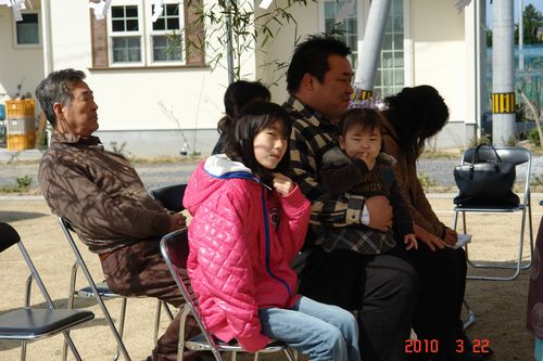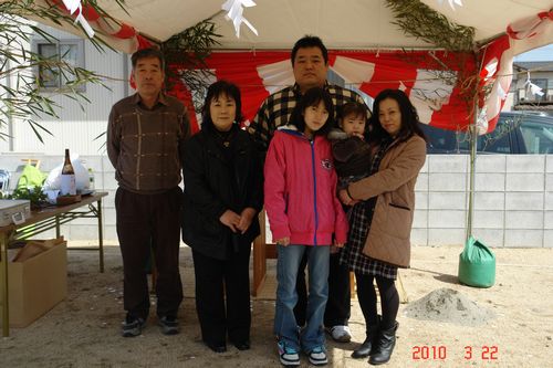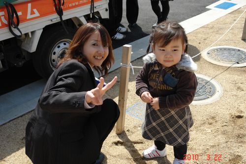 地鎮祭終了後、現地にてご夫婦とお姉ちゃんが打ち合わせ中、