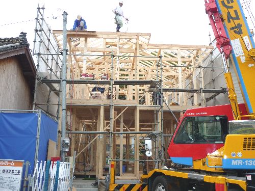 建築中のI様邸の上棟セレモニーです