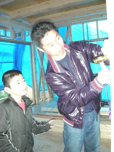 釘打ち式では、流石に上手なパパ
