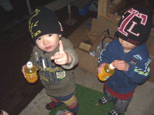 双子のそう君とこう君も、寒い中参加してくれて