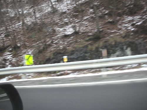 三坂峠辺りは、道路端や屋根の上に雪が・・・