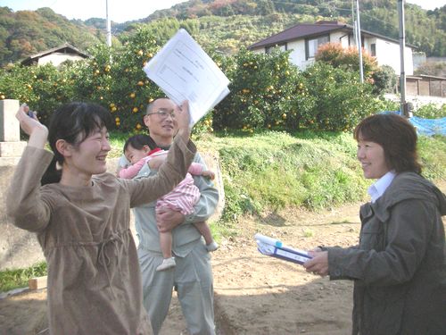 11月最後の日曜日は、 やっぱり賑やかなインター店でした お引渡し済みのお客様が遊びに来て下さったり 建築中のお客様が打合せで来られていたり 子供達の可愛い笑顔を見る事が出来ました りなちゃんとひなちゃんは、まるで姉妹のようです 午前中には、嬉しいご契約もありました 森松町のフローリアタウンに建築で 今日のY様で、最後の1軒になります Y様の「新築一戸建て」の夢を叶えるお手伝いが出来て 私も嬉しいです お土産に、実家でとれた『みかん』と『ゴールドキウイ』を頂きました 熟れて、食べられるのが楽しみです 土地の契約の間、私と一緒に『子供店長』をしていた天音ちゃん 時々グズリながらも、お利巧さんでしたよ って、大泣きじゃん・・・Yさん、すみません そうそう 先日から時々足を運んでいた、三瓶町でも I様邸の建築をする事が決まりました 次々に続く幸せ創り・・・楽しみです サンエルホーム松山インター店 M.iwamoto