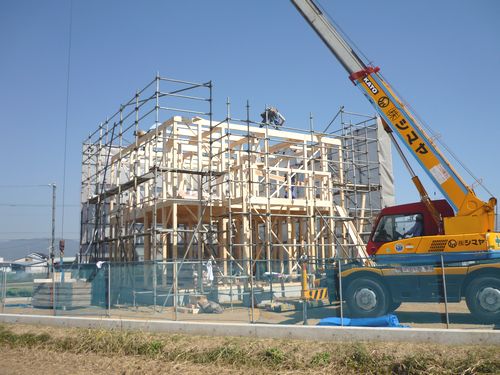 最高の天気の中、東方町S様邸の上棟
