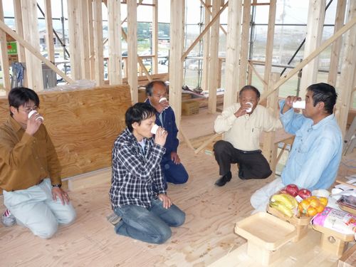 棟梁の祝詞による上棟式も無事に終わり
