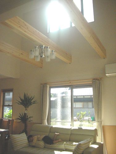 大きな吹抜けのあるリビングには