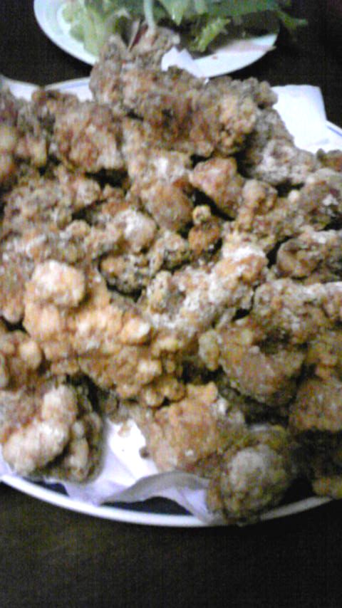 大量に作ったからあげ・サラダ・フルーツポンチ