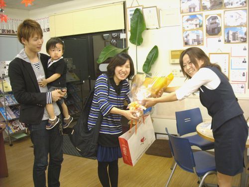 昨日の嬉しい報告と 今日の嬉しい報告と 一気にまとめて書いちゃいますねぇ ++++++++++++++++++++++++++++++++++++++ 昨日は、朝から内子町のU様邸へ行って来ました 素敵なダイニングテーブルも入って とってもいい感じです おまけに、素敵なお土産を頂きました 自家製無農薬の新米 自然の天日で乾かしたので美味しいよって 教えてくださいました さっそく、帰りに『からり』へ寄って栗を調達 美味しい栗ご飯が出来そうです ありがとうございました ++++++++++++++++++++++++++++++++++++++++++ 『栗』と言えば・・・ 事務所に帰ると由加里の机の上に栗が・・・ 先日お引渡しをしたM様のお父様が 中山にお住まいで、 わざわざ届けて下さいました ありがとうございます +++++++++++++++++++++++++++++++++++++ 日中は、エクステリアの打合せで 古川にて建築中のI様が来られてました 久し振りにインター店で遊んだ あぁちゃんも、嬉しそうでした また、いつでも気軽に遊びに来て下さいね ++++++++++++++++++++++++++++++++++++++++++++++ そして、夕方からは・・・ 先日プロポーズの返事を頂いていた D様との挙式でした 土地の契約から始まって 建物契約、打合せ・・・ 気が付けば3時間くらいの時間が経ってました その間、海斗君は薫ちゃんと一緒に 鬼ごっこをしたり、お絵かきしたり とーーってもお利口に遊んでましたょ 花束の贈呈は、サプライズゲストの優季ちゃんから 実は、初めてインター店のモデルハウスに来た時に 案内してくれたのが優季ちゃんでした。 とっても楽しいD様のご主人と 一生懸命に想いを伝え続けてくれた奥様 そして、超かわいい海斗君 これから始まる家造り・・・楽しみですね +++++++++++++++++++++++++++++++++++++++++++++ そして、そして・・・ 今日は、北土居にて建築予定のM田様の契約でした まだまだ出逢ってから日の浅いM田様ですが よくよく聞くと、とーーっても縁のある方で 色んな所で当社と繋がっていました。 何となくモデルハウスを見て、来て下さったのも まるで、運命に引き寄せられたみたいですね これから、生涯のお付き合いとなりますが 宜しくお願いしますね サンエルホーム松山インター店 m.iwamoto