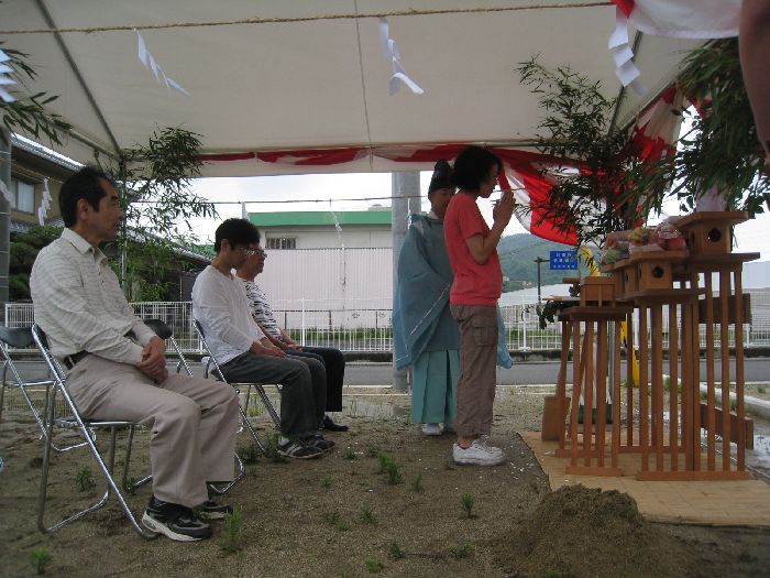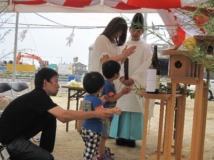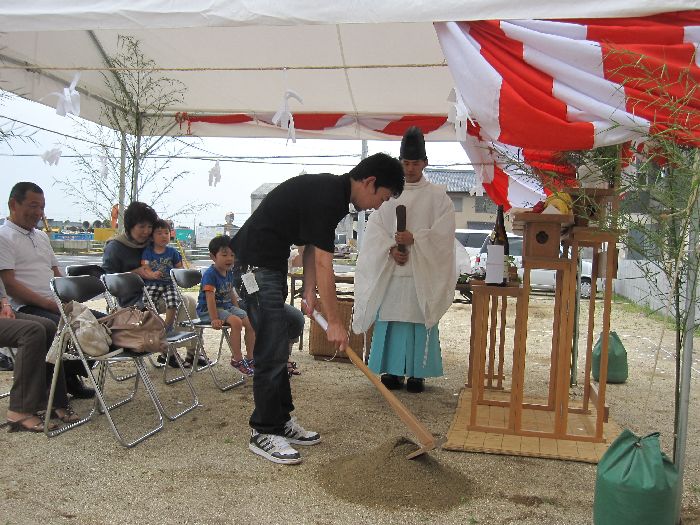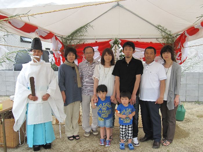 ご夫婦共に、ご両親が駆け付けて下さり、盛大な地鎮祭になりました