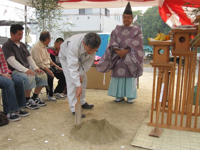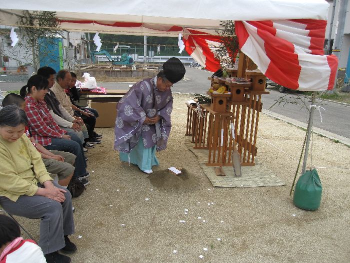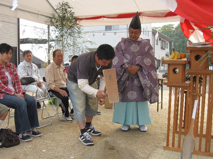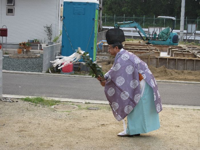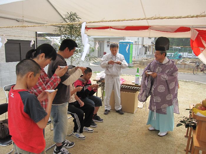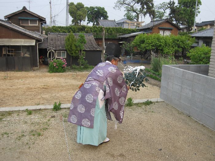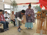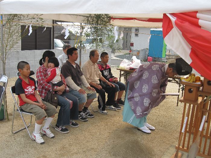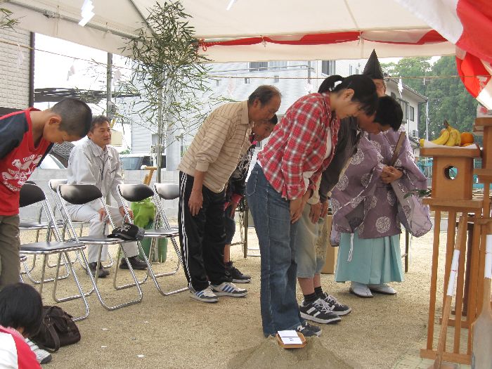 神前に玉串(榊)を奉り拝礼します ![]() お施主様、ご家族、我々施工側のスタッフも、全員が拝礼します。 皆の想いは一つ・・・ ![]() 『どうか、無事に我が家が完成しますように、 氏神様よろしくお願いします 』