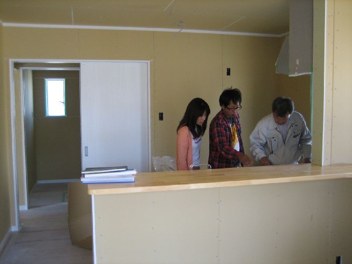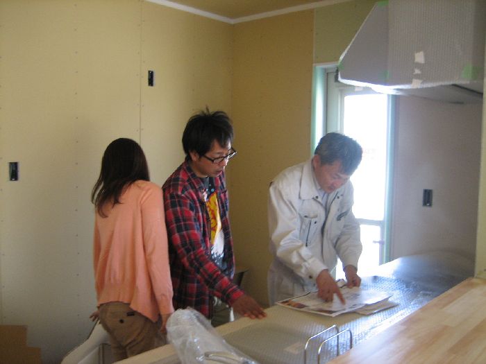 地鎮祭後、建物の配置関係やその他の打ち合わせを行っています。