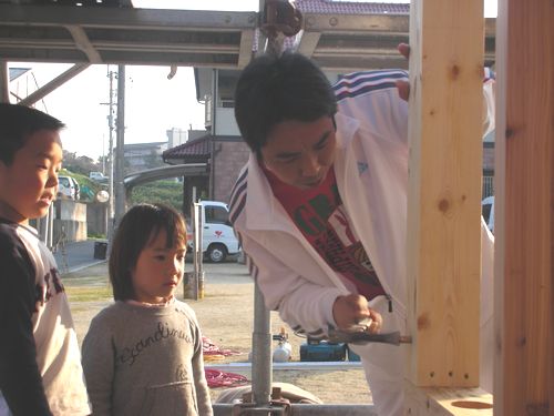 一昨日の上棟報告をしますね ![]() 海の見えるA様邸の上棟 2階の窓からは、 こんな感じで海が見えます ![]() いいなぁぁぁ ![]() 今も、高浜にお住まいのA様 もちろん、今の家からも海は見えます お父さんは、漁師 ![]() なので、お昼には こんな凄い刺身が ![]() 残念ながら、私は食べてませんが・・・ ![]() 夕刻には、いつもの記念の釘打ちと 今回は『記念のドリフトピン』も 打ってもらっちゃいました ![]() 金物工法を採用していますので このピンで、柱と土台を固定します ![]() お兄ちゃんも挑戦 ![]() ![]() ![]() ![]() ![]() ![]() やっぱり、パパは上手でした ![]() ![]() ![]() それもそのはず・・ つい数ヶ月前までは、 現場で働く職人さんですから・・ ![]() どんどん出来上がっていく我が家に 大はしゃぎのマリモちゃん ![]() 骨組みと、屋根のシート張りが完了したら 雨が降っても大丈夫なように 家全体をブルーシートで養生 ![]() そして、記念写真 ![]() 「早いですねぇぇ」と驚くA様 ![]() それもそのはず “棟梁”ばかりが、8人も揃ってますから ![]() しかも、長年一緒に仕事をしている仲間 チームワークもバッチリです ![]() ちなみに、A様邸は『省令準耐火構造』 ・・・って何? 気になる方は、 コチラをクリックhttp://www.mokujukyo.or.jp/taika-jun/index.html 工事の流れは、現場日誌でもUPしていきますね ![]() ・・・更新が遅れていますが・・・ ![]() ![]() ![]() ところで ![]() 今日は、リックにチラシが入ってました ![]() 今週末のイベント案内ですが みなさん、見ましたか? そして、ついに 携帯サイトのHPも始まりました ![]() ![]() ![]() ホームページのトップにも案内がありますが こちらのQRコードを読み取って アクセスして下さいね 今週末も、たくさんの来場を お待ちしています ![]() サンエルホーム松山インター店 m.iwamoto