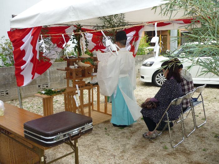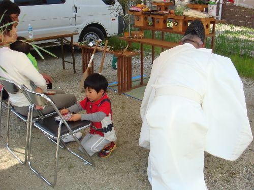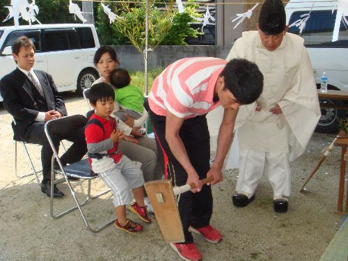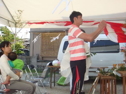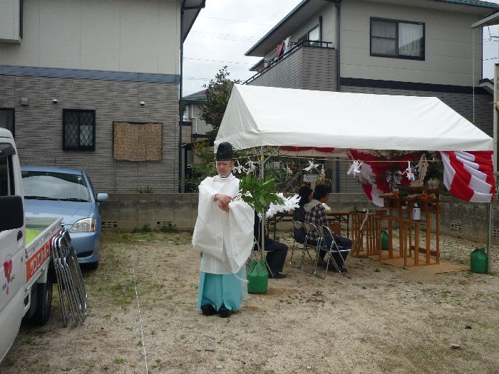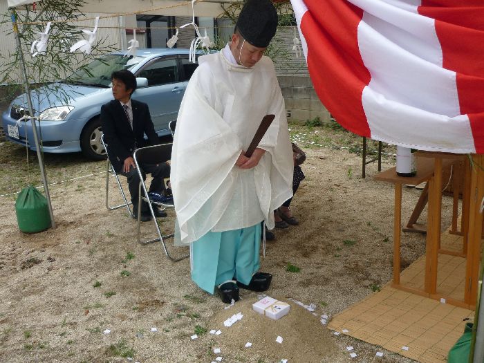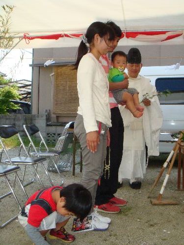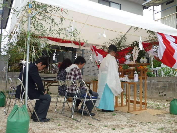 ![]() ![]() 『H様の地鎮祭があるのに~・・・ 』と思っていましたが・・・![]() 徐々に天気が回復し、地鎮祭のあった昼頃には晴れて暑い位 ![]() ホッと安心したかおるちゃんです ![]() さて今日は、 松山市古川で建築がスタートするH様邸の地鎮祭でしたよ ![]() 前回の様子http://mikiinter.blog.shinobi.jp/Entry/972/ H様邸の担当である杉ちゃん &てる君 が行ってきましたので、ちょびっと写真と共にご紹介します ![]() -------------------------------- 地鎮祭とは・・・その土地の神(氏神)を鎮め、土地を利用させてもらうことの許しを得る儀式です H様が氏子となる神社の神職さんに来て頂き、土地の神様に 「工事の無事」をお祈りしてもらいます ![]() -------------------------------- 四方祓い(しほうはらい) この写真は、四方祓い(しほうはらい)の様子 土地の四隅をお祓いをし、清めます 地鎮の儀(じちんのぎ) 初めてその土地に手を付けると言う意味で、盛り砂に、鋤(すき)・鍬(くわ)を入れます その後、神職さんによって、鎮め物を納めます 玉串奉奠(たまぐしほうてん) 神前で、玉串と呼ばれる榊 (さかき)の小枝に紙垂をつけた物を納め、神様へ祈ります緊張感ある雰囲気の中、地鎮祭無事執り行われました ![]() H様、本日は誠におめでとうございます!! これからワクワク楽しみな工事がスタートしますね ![]() また、地鎮祭の後は、長時間に亘る打合せで、お疲れでは無かったですか ![]() これからの事を楽しみに考えながら、今日はゆっくりと休んでくださいね ![]() 貴重なお時間、本日もありがとうございました ![]() P.S いつもコーヒー をお出しする際、少しだけですが、お話させて頂き嬉しいです ![]() ![]()