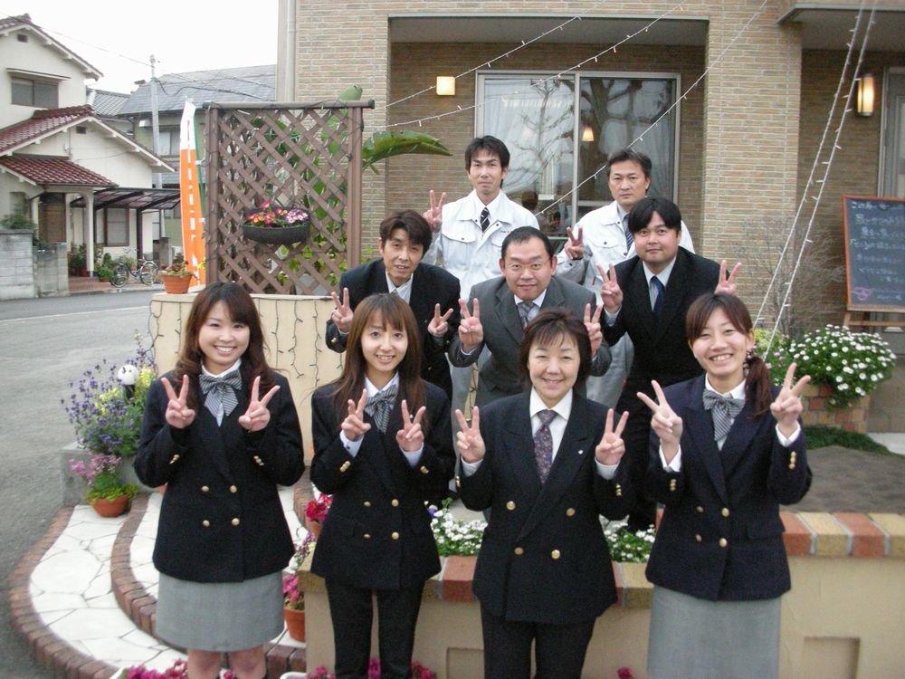 インター店は、建築会社には珍しく女性の多い店舗です。モデルハウスの周りは常に季節の花が溢れ、事務所の中にはいつも笑顔が一杯です(^^)