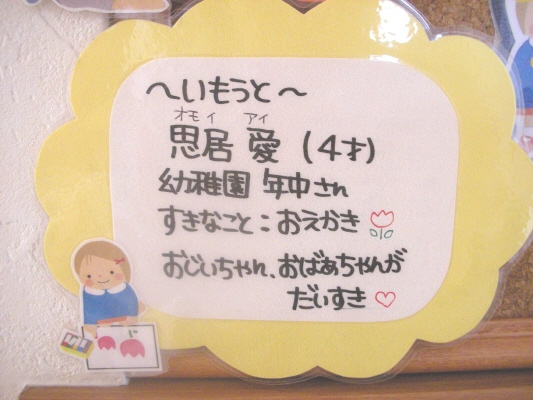 “思いやりのある子が巣立つ家づくり” って・・・たとえば、どんな家の事なんでしょう ![]() ![]() ![]() 松山インター店では、 思いやり溢れる『思居ファミリー』が モデルハウスの中で、 色々なポイントを教えてくれます ![]() それでは、 案内役の思居ファミリーをご紹介 ![]() ![]() ・・・ちなみに・・・ ![]() 先日、2階の『優しさが育つ部屋』を見たY原家では 早速子供部屋の使い方を変える事にしたとか・・・ ![]() まだまだ先の家づくりの人も まさに今、間取りを考えている人も 他社で契約しちゃった人も とにかく一度見に来て、参考にして下さいね ![]() ![]() 出合った全てのご家族に 思いやりが溢れますように・・・ ![]() ![]() モデルハウスの周りは 春の花が満開です ![]() ![]() ![]() そして、外の飾りつけもリニューアル ![]() ![]() 皆さんにお会いできるのを楽しみにしています ![]() ![]() サンエルホーム松山インター店 m.iwamoto PR 今日から