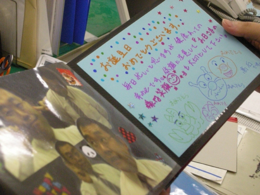 今日は、産業情報センターで、 終日会議と勉強会でした 勉強会では、プランニングに全員でトライ 皆、頑張ったよぉぉ でも、K先生の図面には圧倒されました 凄い!あんな風に書けるようになりたいね 事務所に戻ってから グアム旅行でお祝いを出来ずにいた 薫ちゃんの『Happy Birthday』をしました 皆からの、メッセージアルバム 県外のあの人も参加 ~~ありがとうございました~~ 夜は・・・ 久々に・・・ 高須賀道場の開催です 初参加の宮ちゃんも、頑張りました 優季ちゃんは、笑顔でナイスショット 手取り、足取りの由加里 ・・・頑張るんだよ・・・ しかし、 後姿は、サンエルホームゴルフ倶楽部みたいですね 「毎週練習しようねぇ」って、 本当かなぁぁぁ 社長! 付き合って、教えてくれてありがとうございました サンエルホーム松山インター店 m.iwamoto