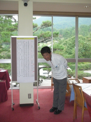PR 昨日は、第42回の 幹建設ゴルフコンペでした ![]() 成績表の写真 見えますか? 一番右の欄が順位です ![]() 右から二番目が、 ハンディを引いたネットスコア ・・・分かるかなぁ・・・?? ![]() 優勝は、K産業のTさん ![]() 準優勝は、北店のマ-君です ![]() 第40回の開催の時に 驚異的なスコアを出したM浦さんでしたが 参照http://mikiinter.blog.shinobi.jp/Date/200806/2/ 今回は、83・83の TOTAL166でまわりましたよ ![]() ![]() ![]() 偉~い! ちゃんと練習したんだね ![]() もちろん、ブービーメーカーは確定ですが・・・ ![]() ![]() 昨日は終日、秋晴れのいいお天気でした ![]() ![]() 私は、社長と一緒のパーティーで 共通の20年来の知人も一緒でした ![]() もう!ホントに楽しいキャラで 二人とも、こんなに笑う事ないなぁ って位、大笑いの1日でした ![]() ![]() ![]() 心身共にリフレッシュして 有意義な1日になりました ![]() ![]() ただ・・・ 久々の山岳コース 走り回った私は、筋肉痛で 足がパンパンです ![]() 運動不足ですね・・・ ![]() 次回の開催は、12/17 北条CCの予定です 忘年会の翌日なので 皆、飲み過ぎ注意ですよ ![]() ![]() あっ 私か・・・ ![]() サンエルホーム松山インター店 m.iwamoto 今日は、 『中島塾』の日でした 月に一度、兵庫から私達のために 足を運んで下さる中島塾長を迎え “経営指導”をして頂いています ![]() 今期の上半期を終え 下期の計画 ![]() そして、2年先の年度まで しっかり計画が出来ました ![]() あとは、 今日決めた目標を 全員で達成していくだけです ![]() 世界一たくさんの“ありがとう”を言っていただける そんなグループ会社を目指しますよ ![]() ![]() ![]() 明日は、 久万高原にて、ゴルフコンペです ![]() 相変わらず練習もしていないし・・・ 高原のいい空気を吸って リフレッシュしてきますよ ![]() サンエルホーム松山インター店 m.iwamoto |