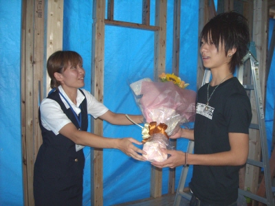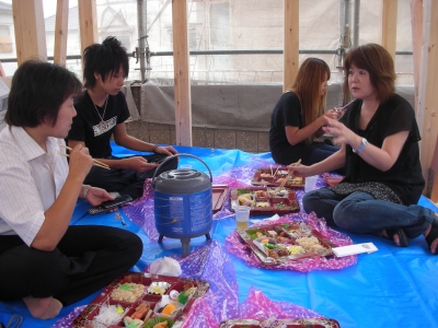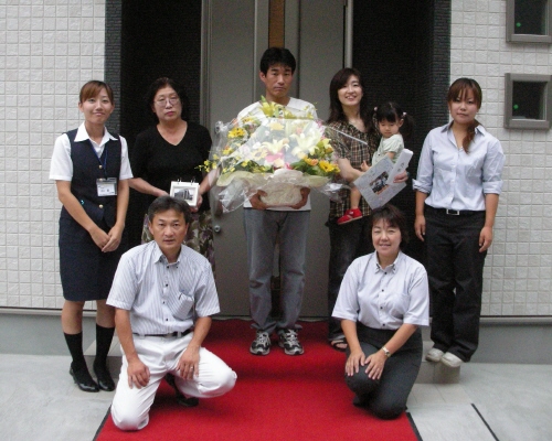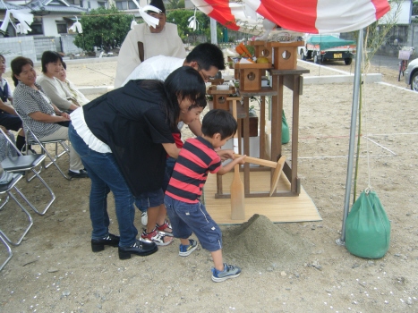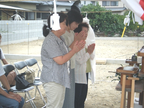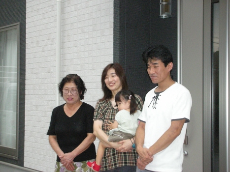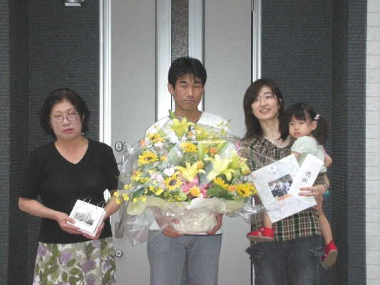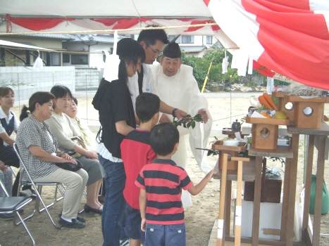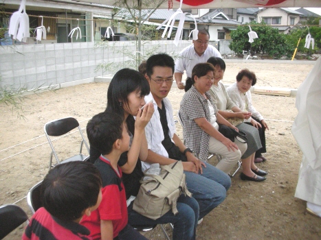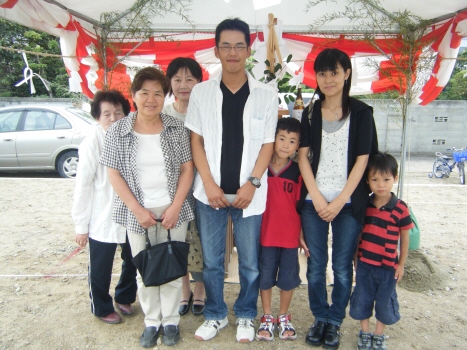 H川様邸の地鎮祭が 無事終了しました ちゃんとブログも見てくれていたので 予定通りに開始 良かったです 近所に住むお二人のお母さんと 奥さんのおばあちゃんも参加してくれました 家族みんなで、鍬入れをして 玉串を供えて 工事の無事を祈願しましたよ 「祝い酒だから・・」と 3杯も飲んだ奥さんには、 一本取られたなぁ・・・という感じですが H川様邸の工事の様子は 今度始まる『現場日誌』でも公開していきますので どうぞお楽しみに 今日は、T田様邸の お引渡しセレモニーもありました DVD撮影や、プロのカメラマンの撮影もあり 緊張気味の皆でしたが ちゃんと、いい笑顔の写真も撮れましたよ