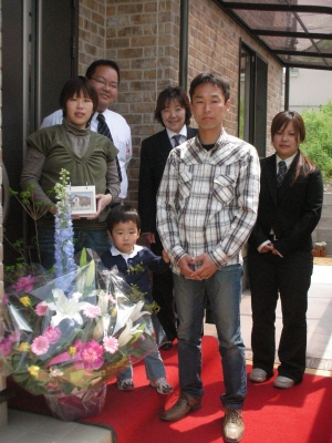 今日は、お引渡しセレモニーがありました 去年の6月にモデルハウスへ来られた時には 「5年後位に、計画しています。」 と、言っていたO様ですが 11月に「二人目が出来る予定になったので、 もう建てようと思って・・」 と、再来場して下さいました その予定の赤ちゃんも、もうすぐ生まれそうです 趣味の乗馬で国体まで行った奥様 そして、乗馬クラブへお勤めのご主人 玄関へのアプローチには、 特注の馬の蹄鉄を埋めました 窓から桜の見えるマイホームの完成に 「夢のようです」とコメントして下さったご主人 出逢う前よりも、出逢った後に 少しでも幸せな暮らしをご提案出来たら・・・ そんな想いが叶い、私達も嬉しい瞬間でした これからも、末永く宜しくお願いします サンエルホーム松山インター店 m.iwamoto
