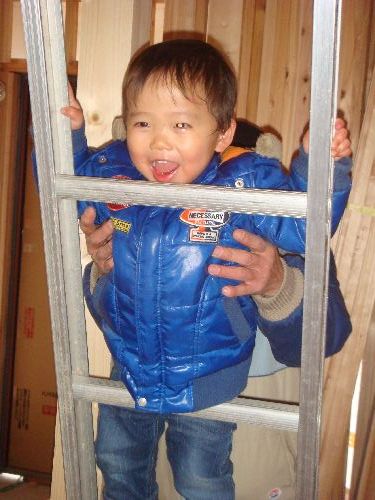 はしごに上ってパパとママが居る2階に行きたかったはる君でしたが、