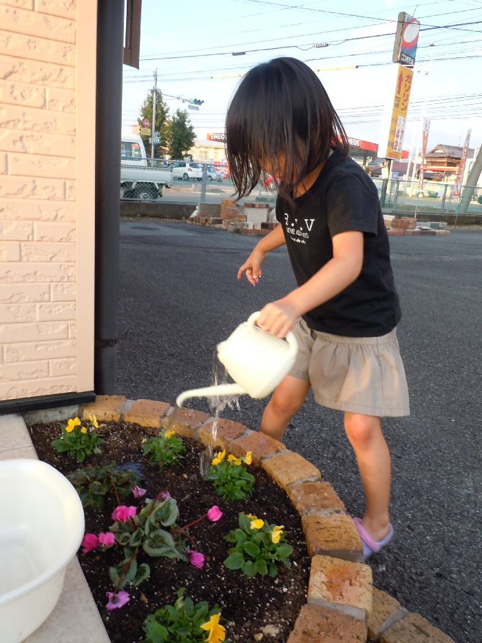 一緒にお花の水やりをしてくれました