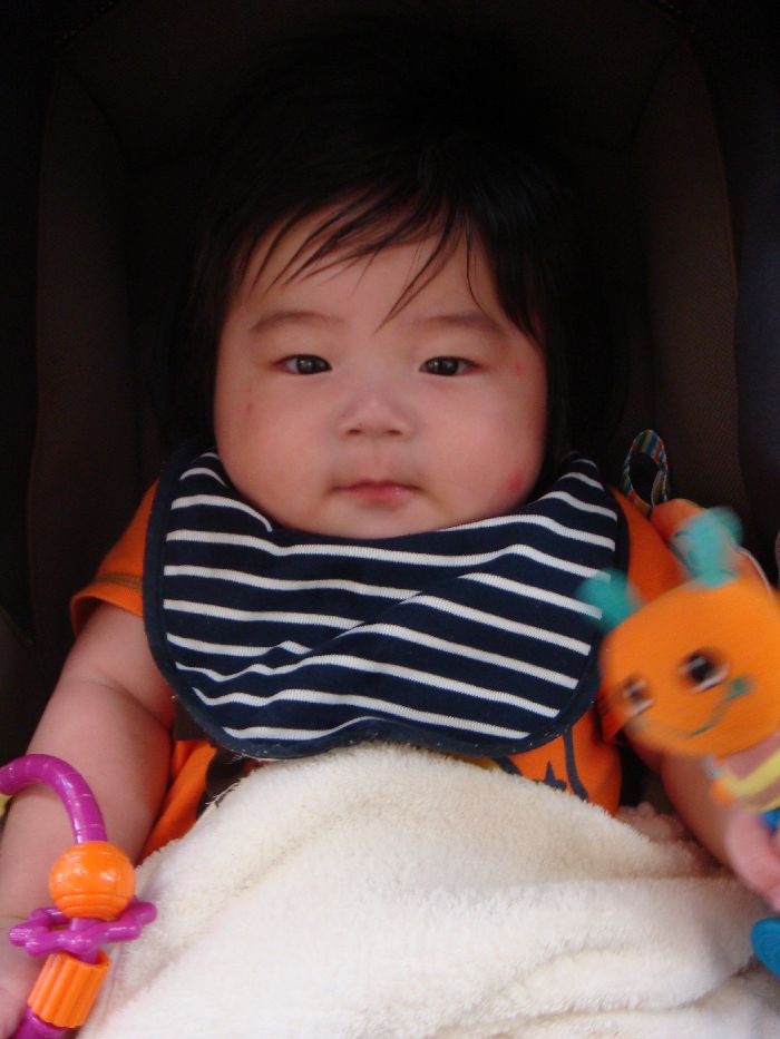 ベビーカーに乗って、ゆいちゃん
