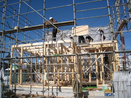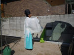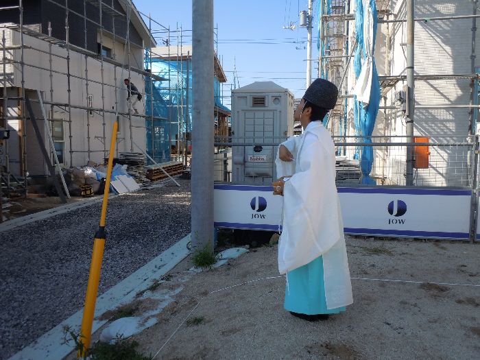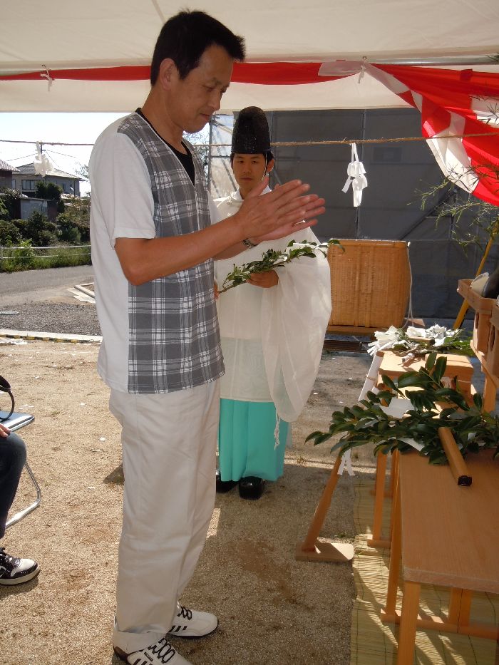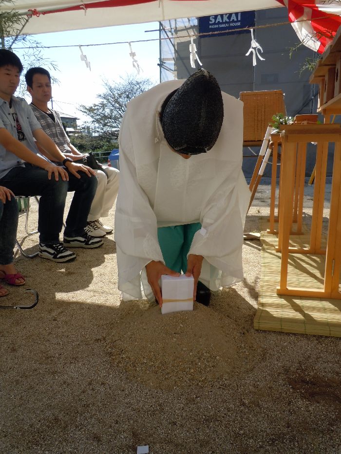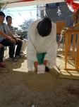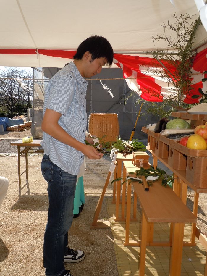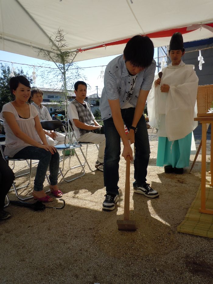 初めてその土地に手を付けると言う意味で、盛り砂に、鋤(すき)・鍬(くわ)を入れます