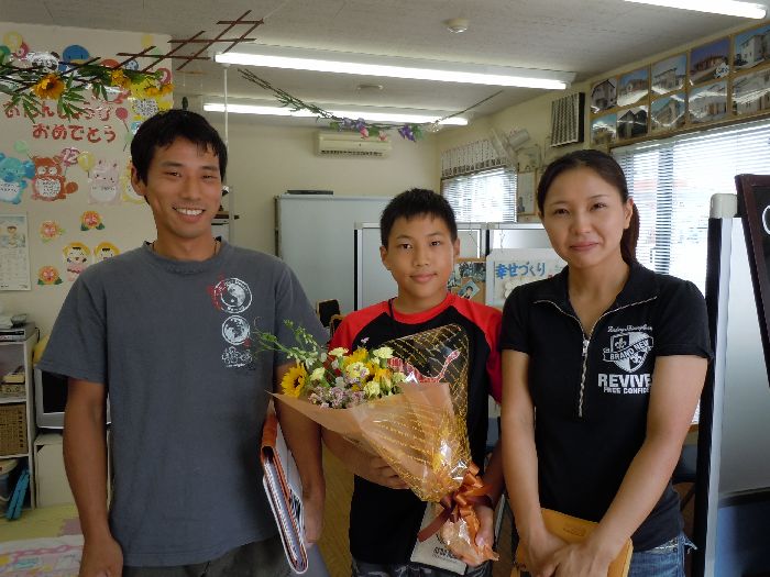 皆さん、こんばんは 今日からダイエット始めます宣言 皆さんご存知、ダイエット三日坊主の・・・ かおるちゃんです さて、今日も嬉しいご報告がありますョー!! A様 建物ご契約 A様・・・ 実は・・・ いつもお世話になっている大工さんなんです!! 普段は、お客様の幸せづくりの為に、 棟梁として現場で働いている達也さん (店長や修ちゃんは、達っちゃんと呼んでます) 今度は、 大切な家族の為に家づくりを・・・ 素敵ですね 絶対に、絶対に、 『建てて良かった』と言って頂けるように、 メンバー全員で、 A様ファミリーを幸せにします!! 一緒に家づくりを楽しみましょうね いつもお客様だけではなく、 私たちスタッフにも優しくて親切な達也さん 私たちからの色々な無理難題にも いつも笑顔で応えてくれています・・・ 達也さんの家づくりでは、 遠慮せずに、ワガママをいっぱい言って下さいね!! 店長に笑 幹建設(サンエルホーム)の全社員を代表して、 インター店メンバーが、 必ず、幸せにします!! 改めて・・・ 家づくりのスタート、 おめでとうございます!! これから、 よろしくお願いします!!