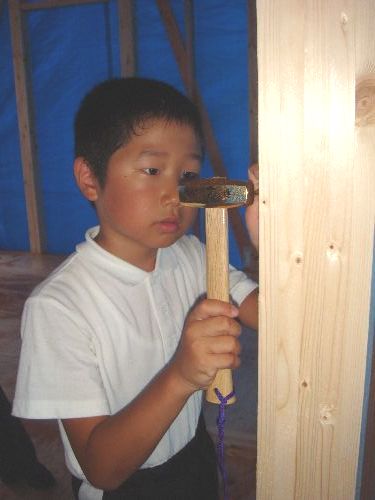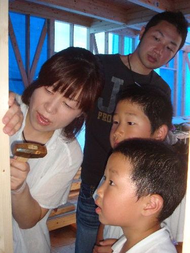 こんばんは ゆいちゃんです 今日は昨日のブログで告知していた通り 砥部町宮内で建築中の F様邸 上棟 が行われました 工事に携った皆さん、暑い中、お疲れ様でした 上棟工事終了後、釘打ちを行いました 皆、興味津々で釘を打つ様子を近距離で見ていました けい君は真剣に打っていて、とても上手に出来ました こう君・しょう君も頑張って打てました お子さん3人は釘打ちが始めてだったので、とても楽しそうでした 記念にハイ、チーズ 棟梁の掛水さんから花束を渡してもらいました F様、本日はおめでとうございます これから現場に行くのが、楽しくなりますね お家の完成に向けて工事が進んでいきますが、気になることがあったら何でも言って下さい