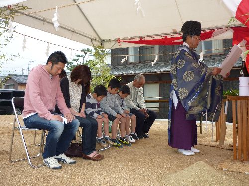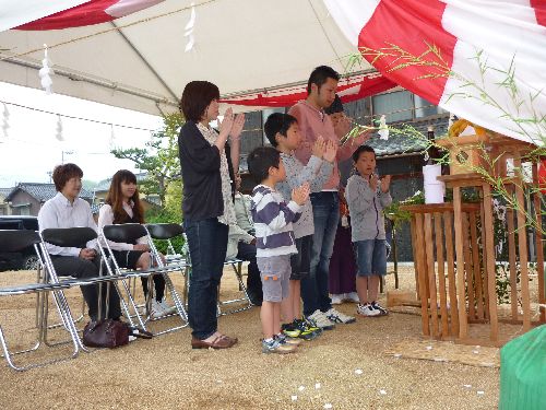 こんばんは ゆいちゃんです 今日は嬉しい事が沢山あったのでお伝えしますね まず始めに… 砥部町・F様邸 地鎮祭 参加者:店長・輝君・私です 予定より30分早く、雨が降っている中、行われました。 AM8:00開始 鍬入れ(くわいれ) ご主人の「エイ、エイ、エイ」の掛け声、良かったです 気合が入っていました 玉串奉奠(たまぐしほうてん) 皆で工事の安全を祈願しました けい君・こう君・しょう君も上手に出来ました F様、おめでとうございます 時々、地縄を張った状態を見て↓↓ 建てる家の大きさが本当にこの大きさなのかな? 大きさ、間違ってないかな?予定している大きさより小さくないかな? と不安に思われる方がいらっっしゃいます。 でも、予定している大きさの通りにお家が建ちますので、安心して下さいね 想っているより大きい家が建ちます F様のお家はこれから工事に着手します 上棟の時には大きなお家のカタチが見えます 楽しみにしていてくださいね 次は H様 ご契約 H様のお家は今治市内にて建築予定です ご夫婦と初めてお逢いしたのはちょうど1ヶ月前のことです H様に来て頂いたり、杉原さんが今治に行ったりの1ヶ月でした H様の想いが沢山詰まった夢のマイホームをお任せ頂くことになり嬉しいです 分らない事があったら何でも言って下さい これから、生涯のお付合いが始まります 宜しくお願い致します F様、H様 いつも遠方からお越し下さりありがとうございます まだ、しばらくの間は打合せ等で事務所に来て頂く事が多いと思いますが、 松山に来られる際はお気をつけて起こし下さい
