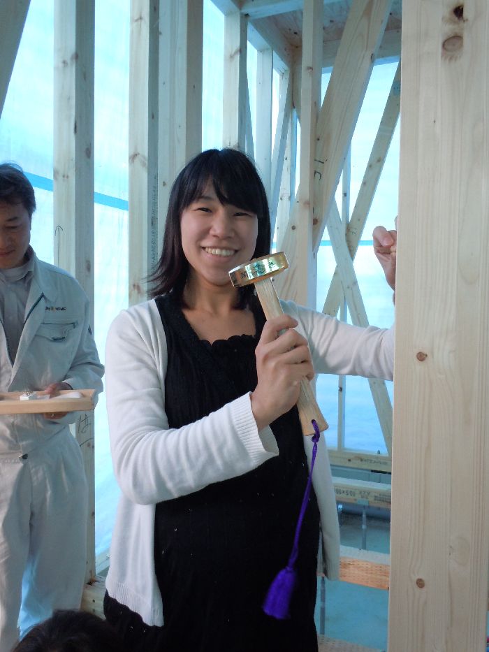 ご主人はお仕事の為、一緒に釘打ちセレモニーを行うことが出来ませんでしたが、